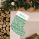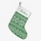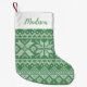 Add a festive touch to your home and hearth this holiday season with custom holiday stockings! The custom stockings feature a green and white sweater pattern with a white band at the top. Personalise the Christmas stockings with your name or custom monogram.