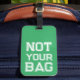 Spot your travel bag with this bright green funny luggage tag saying with the words 'not your bag'. You can change the color of the background by clicking on the customize it button.