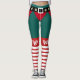 Cute Green, Red White Stripes Candy Cane With Bow Christmas Elf Women's Leggings Design.