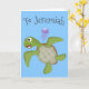 Cute green sea turtle happy cartoon illustration card