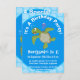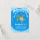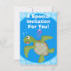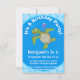 This happy green sea turtle is blowing bubbles! Drawn in cute cartoon illustration style on a blue background for a fun celebration!