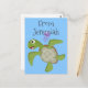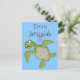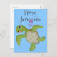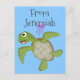This cute green sea turtle is adorable fun drawn in happy cartoon style with a jellyfish for company.