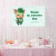 St. Patrick's Day banner with a cute green illustration of a pig standing up on his back feet, dressed in fancy hat, vest and pants.