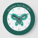 A decorative and unique wall clock will enhance any office or home décor. Cute Green Teal Butterfly Personalized Decorative Wall Clock. Add a custom-made design wall clock to any room or office; makes a great gift idea.
