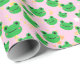 Cute green toad Pink Sparkle Birthday Party Wrapping Paper
