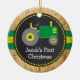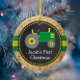 Cute Green Tractor First Christmas Faux Wood Ceramic Tree Decoration