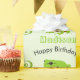 Cute Green Tree Frog Pattern Name Age Birthday Wrapping Paper