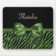 Cute Green Zebra Print FAUX Glitz Bow With Name Mouse Pad