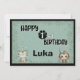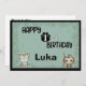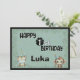 Gorgeous safari-themed greeting card featuring a cute tiger and monkey and lush botanical greenery around the edge. There is a place to personalise the age on an animal footprint and for your child's name. Inside, you can write a personal message along with the from and to info.
