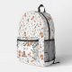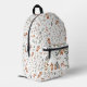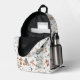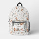 An adorable and cute hand painted watercolor country rustic greenery forest animals woodland backpack featuring cute bear, deer, racoon, rabbit, hedgehog and a fox in neutral woodlands colour, in orange, green, brown colours. with greenery leaves and tree branches.