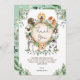 Whimsical thank you card featuring illustration of rustic watercolor greens, foliages and adorable puppies