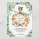Whimsical thank you card featuring illustration of rustic watercolor greenery and adorable woodland animals: deer, bear, racoon, bunny, fox, skunk and a mouse