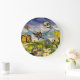 Cute Greens and Blues Children Watercolor Art Large Clock