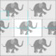 This beautiful fabric features a simple modern pattern of a cute grey little elephant with a playfully lifted trunk and foot.