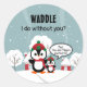 Cute Grey Baby Penguin In Winter Snow Classic Round Sticker