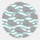 Cute Grey Baby Whale on the Waves Cartoon Classic Round Sticker