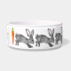 My watercolor painting of a soft grey bunny rabbit in a large format pattern makes a creative bowl for any pet, but especially for your pet rabbit! It has a neutral grey and white look. Bunny also has a brown eye and blush pink ears. Customise with your pet's name between the two carrots - it's easy to personalise using the text template and edit menu. This bowl has no rim, so your bun can't pick it up and dump it. Perfect for anyone who likes rabbits, animals and nature. Whimsical, unique, original artwork & design by Tuzi Williams.