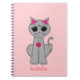 Cute grey cat and editable name on light pink Notebook. Ideal for cat lovers.