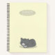 This notebook features an adorable grey cat in loaf position with a light yellow background