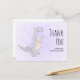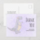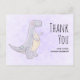 Thank you postcard with a cute illustration featuring a grayish purple dinosaur.