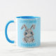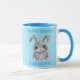 A cute aqua coffee mug with a cute easter bunny on both sides. Easy to edit text to suit your own easter celebration. To change the name or occasion click on the personalise button. This design contains some elements of A.I.