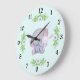 Cute Grey Elephant And White Bunny Rabbit Large Clock