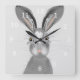 Cute Grey Hare Whimsy Illustration Square Wall Clock