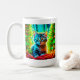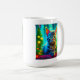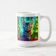 Double-sided cute grey kittens sitting in front of lit up Christmas trees coffee mug.