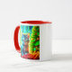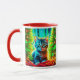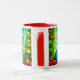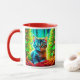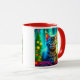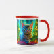 Double-sided cute grey kittens sitting in front of lit up Christmas trees coffee mug.