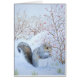 This festive snow scene shows a cute little grey squirrel sitting amongst the snow covered woodland shrubs, he's found a bush covered in red winter berries and is enjoying nibbling his lucky find. I think the winter wildlife picture of this hungry little grey squirrel makes a lovely festive greeting card and it will certainly be very well received by friends and family at this festive time of year. The Christmas greeting card has a simple but meaningful message inside that's a suitable send to everyone on your Christmas card list. The picture on this Christmas card is a produced from my original watercolour titled "A Winter Feast.”