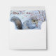 This squirrel snow scene on the inside of this envelope shows a cute little grey squirrel sitting among the snow covered woodland shrubs, he's found a bush covered in red winter berries and is enjoying nibbling his lucky find. The winter wildlife picture of this hungry little grey squirrel makes a unique note card envelope and matches the grey squirrel not card. The picture on this wildlife envelope is produced from my original watercolor painting titled "A Winter Feast.” This is a customisable envelope, you can personalise it by adding your own text.