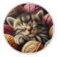 Cute Grey Striped Kitten Napping in Yarn Ceramic Knob