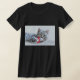 T-shirt with a cute Christmas photograph of a grey tabby cat playfully biting a red santa hat.