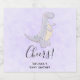 Baby shower bottle labels with a cute illustration featuring a grayish purple dinosaur.