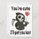 Funny and lovely Grim Reaper with romantic heart balloon says “You're cute, I'll get you last". Perfect for Valentines Day as well as for Halloween. For kids and for adults.
