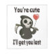 Funny and lovely Grim Reaper with romantic heart balloon says “You're cute, I'll get you last". Perfect for Valentines Day as well as for Halloween. For kids and for adults.
