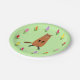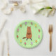 This awesome set of paper party plates features a digital art image of a cute Ground squirrel called a groundhog, also known as a Woodchuck. This adorable animal is brown and furry with black feet and a fluffy tail. It has big eyes and this one is smiling because it is friendly. The cute rodent is surrounded by different coloured Tulip flowers. I chose to include Tulips because Groundhogs have a reputation for eating them in gardens. Some of the Tulips are traditional ones and others are lily-flowered ones. These little critters come out in Spring after hibernating through Winter.