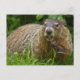 This postcard features a photo of a cute groundhog eating some grass for a snack.