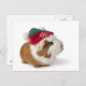 Cute Guinea Pig With Christmas Hat On White Holiday Postcard