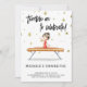 Celebrate your little gymnast's special day with our adorable gymnastics birthday invitation! Featuring a charming girl gracefully poised on a balance beam, this invitation showcases vibrant pink leotards and elegant black script typography that reads, "Tumble on to celebrate." The enchanting background adorned with simulated gold stars adds a touch of sparkle, making it perfect for a memorable birthday party. Invite friends and family to join in the fun and create lasting memories with this delightful design. Illustrated and designed by Patricia Alvarez.