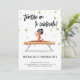 Celebrate your little gymnast's special day with our adorable gymnastics birthday invitation! Featuring a charming illustration of a black girl gracefully poised on a balance beam, this invitation captures the spirit of fun and athleticism. The elegant pink leotard and whimsical black script typography that reads "Tumble on to celebrate" set the perfect tone for a joyful gathering. With a pristine white background adorned with simulated gold stars, and a sophisticated black back featuring more gold accents, this invitation is sure to impress your guests and create excitement for the upcoming celebration. Make your child's birthday unforgettable with this delightful design! Illustrated and designed by Patricia Alvarez.
