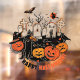 Cute Halloween Window Cling with Pumpkins, Bats, Tomb Stones, Witch and Black Cat Playing a Violin