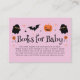 Enhance your Halloween baby shower with our Cute Halloween Baby Shower Books for Baby Enclosure Card. Perfect for a Halloween baby shower theme, this card offers delightful Halloween themed baby shower ideas. Ideal for a girl, it fits a pink Halloween baby shower theme with Halloween themed baby shower ideas pink. Discover Halloween baby shower ideas that are as cute as they are spooky. From cute Halloween baby shower ideas to somethings brewing Halloween baby shower ideas, it's perfect for any a baby is brewing baby shower ideas or baby brewing shower ideas. Celebrate with baby is brewing shower ideas and little boo baby shower ideas!