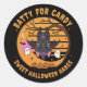 Add a whimsical touch to your Halloween with this adorable ‘Batty for Candy’ sticker! Featuring a friendly cartoon black bat wearing a witch hat and purple cape, hanging upside down from a tree branch, with three little pumpkins below and two cute ghosts on the sides. The background shows a warm sunset/moonrise with a crescent moon. Perfect for decorating notebooks, laptops, treat bags, or as a gift for Halloween lovers. Fun, festive, and kid-friendly, this sticker brings sweet Halloween vibes wherever you stick it!