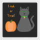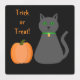 This awesome set of food Favour labels features a digital art image of a cute grey cat with black ears, nose and mouth and bright green eyes. The cat is wearing a green collar with a bright glowing orange gemstone charm set in gold. The cat is sitting next to an orange pumpkin. There is custom text so you can include a message. The default message reads Trick or Treat! making these ideal labels for party favours and trick or treat gifts.