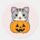 Cute Halloween Cat in Jack o Lantern Classic Round Sticker