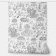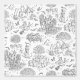 Cute Halloween toile de jouy design, with multiple cats and other characters. Hand drawn in a simplified engraving style with black lines on white.