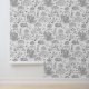 Cute Halloween Cats Toile de Jouy in Black & White Wallpaper