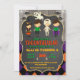 Cute girls or boy's Halloween birthday invitation featuring a decorative chalkboard frame with a faux gold border. The design also features for cute Halloween characters a little witch, mummy, vampire and Frankenstein as well as a ghost. A really cute way to invite your little one's guests to her or his Halloween themed birthday party.