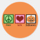 Peace Love Halloween. A peace sign, heart, and a jack o'lantern in front of an orange background make a great gift for October.